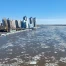 - На берегу после ледохода остались большие глыбы льда.