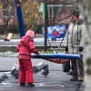 Ребенок играет на детской площадке.
