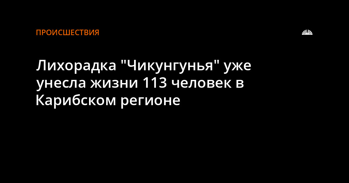Лихорадка "Чикунгунья" уже распространилась на 33 страны в бассейне Карибского моря. Зарегистрированы 651,3 тыс случаев подозрения на данную эпидемию, погибли 113 заболевших.