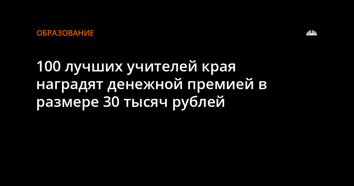 100 учителей Алтайского края получат денежные премии в размере 30 тысяч рублей. Премии вручит губернатор Алтайского края в День учителя. Конкурсный отбор лучших учителей для денежного поощрения проводится с 2006 года в целях поддержки педагогов, реализующих инновационные проекты и программы.