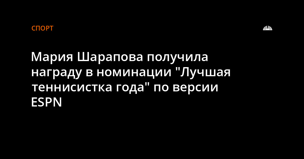Российская спортсменка Мария Шарапова получила награду в номинации "Лучшая теннисистка года" по версии ESPN на 20-й ежегодной премии ESPY в Лос-Анджелесе. "Лучшим теннисистом года" стал серб Новак Джокович.