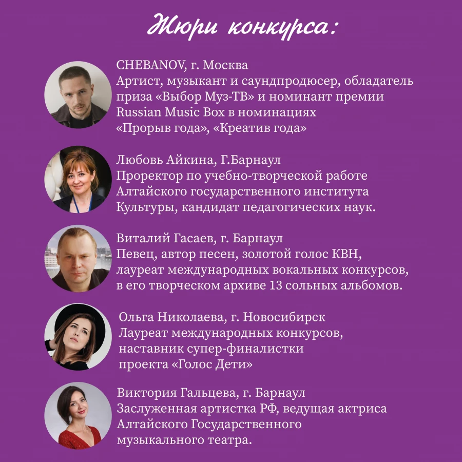 Председателем жюри выступит Иван Чебанов (CHEBANOV) - известный артист, музыкант и саундпродюсер. Участник таких шоу как «Голос», VK Fest, Big Love Show, а также обладатель приза «Выбор Муз-ТВ» и номинант премии Russian Music Box. Иван является автором кавера на песню Андрея Губина «Ночь», который стал лидером топ-чартов в России и СНГ.