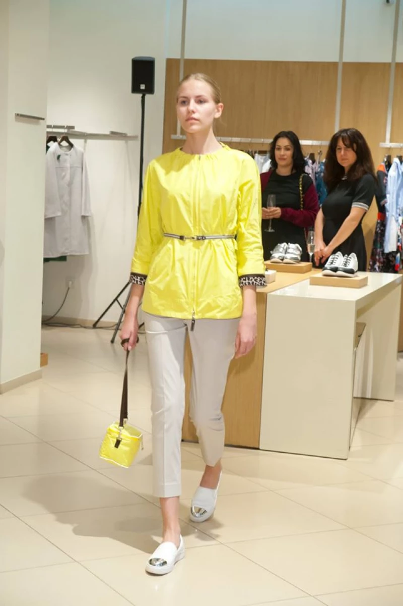 Удобство и комфорт — главная тема коллекции и показа, который открыли плащи от активного жёлтого цвета до глубокого синего. Основная тема хорошо считывалась в разных фактурах и силуэтах. Шёлковая блуза с бантом, платье с принтом, юбка-карандаш, платья-макси — всё передавало ощущение свежести и яркого летнего настроения.