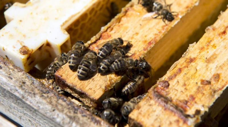 В-третьих, мы делаем рамки с сотами только из своего воска. Используем забрус — это воск, которым пчелы запечатывают рамки, верхняя часть сот. Он максимально чистый.
