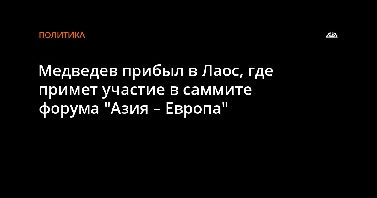 Премьер-министр России Дмитрий Медведев прибыл в понедельник в столицу Лаоса город Вьентьян, где проведет переговоры с руководством этой страны и примет участие в саммите форума "Азия – Европа" (АСЕМ), - пишет "Газета".