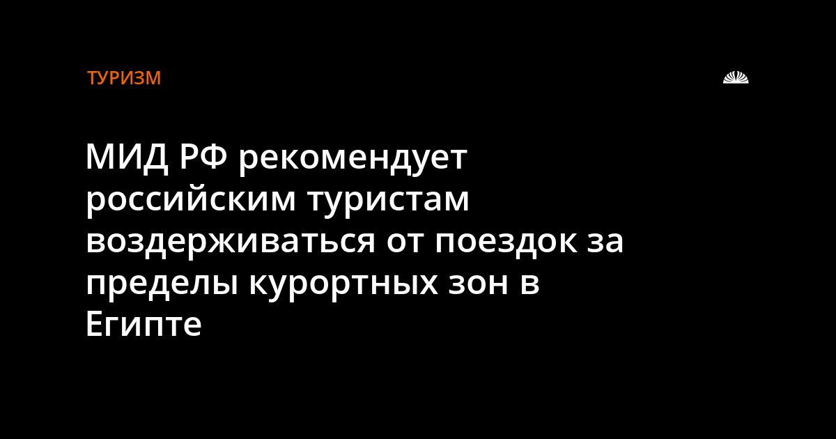 МИД России подтверждает рекомендацию российским гражданам, находящимся в Египте, избегать районов проведения демонстраций и иных массовых общественных акций, а прибывшим в эту страну в туристических целях, – учитывать предписания местных властей, воздерживаться от поездок за пределы курортных зон, поддерживать при необходимости связь с российским посольством в Каире, сообщается на сайте МИД РФ.