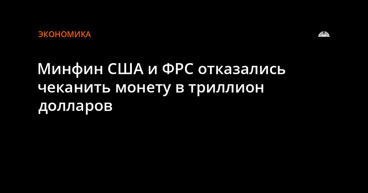 Министерство финансов США и Федеральная резервная система (ФРС) отказались чеканить платиновую монету в 1 триллион долларов, передает агентство Reuters.