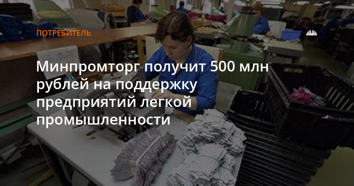 Минпромторг получит 500 млн рублей на поддержку предприятий легкой промышленности