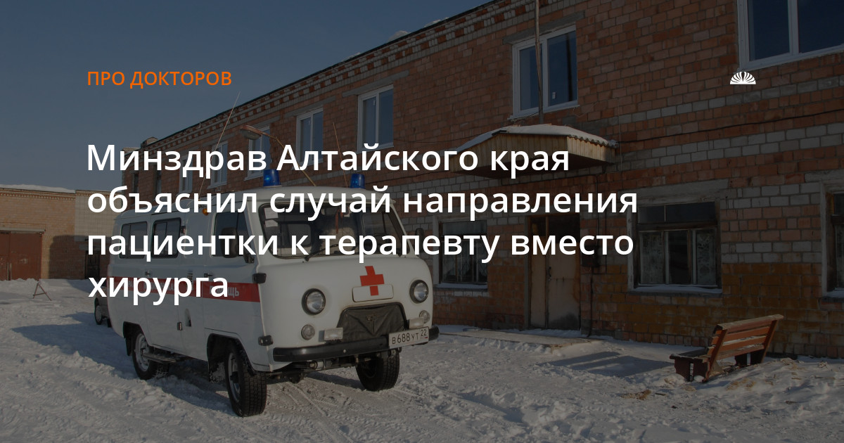Минздрав Алтайского края объяснил случай направления пациентки к терапевту вместо хирурга