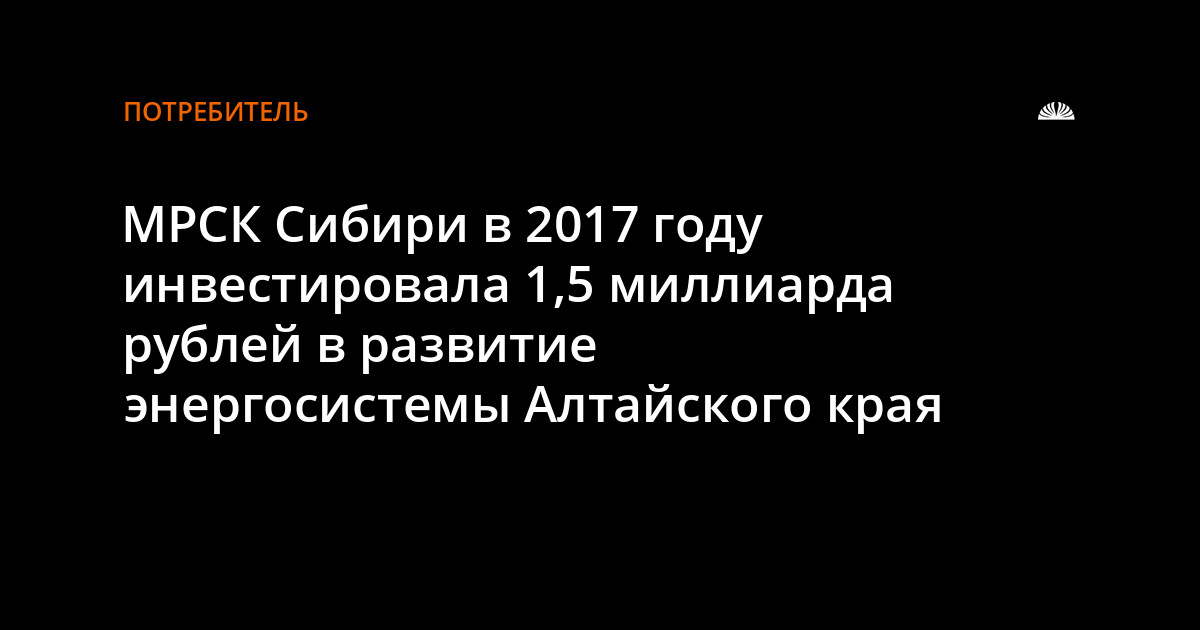 В 2017 году энергокомпания выполнила все обязательства перед Правительством Алтайского края. Так, были реконструированы подстанции 110/10кВ "Славгородская", "Шипуновская", "Пригородная", а также воздушные линии электропередачи 35 кВ "Коминтерн - Полуямки", "Целинное – Мартыново", "Третьяково – Староалейка". Энергетики построили более 100 километров ЛЭП 10 – 0,4 кВ.