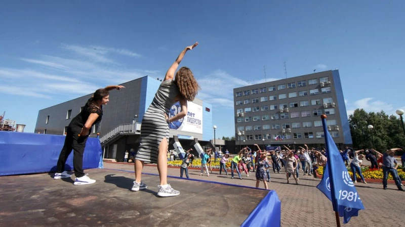 Утро 12 августа для сотрудников заводоуправления было необычным. Их впервые пригласили на урок современного офисного фитнеса. Ритмичная музыка на площади и профессиональные тренеры на яркой сцене никого не оставили равнодушным. Начальники отделов, специалисты и служащие с удовольствием посвятили несколько минут разминке под открытым небом. Им предложили комплекс эффективных упражнений, которые не требуют специальной физической подготовки и доступны даже сотрудницам на высоких каблуках.