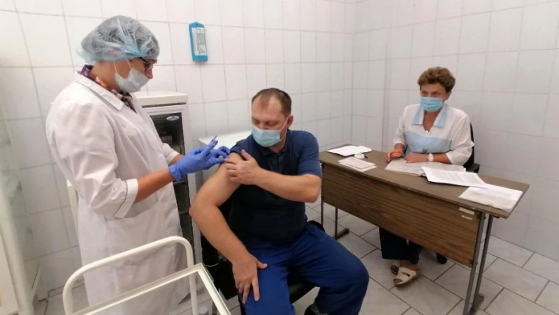 Сотрудники прививаются в рабочее время с минимальными временными затратами, соблюдая необходимые меры безопасности: в медицинской маске и с сохранением социальной дистанции.