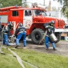 Газоспасатели демонстрируют зрителям возможности пожарной техники. Особенно радует детей водно-пенное шоу.