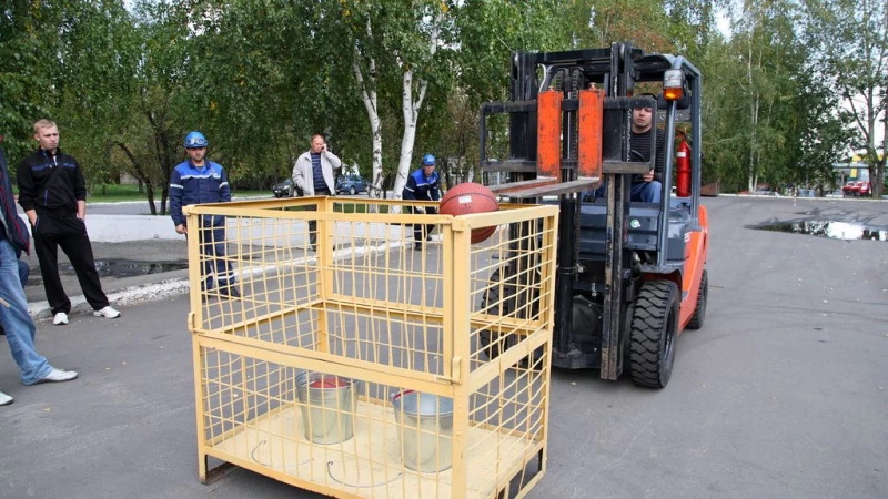 Обязательным этапом любого конкурса среди водителей на предприятии является проверка знаний правил дорожного движения. После этого участники демонстрировали свои навыки фигурного маневрирования: провезти "змейкой" на поддоне ведро с водой, а потом и один за другим пять поддонов, которые нужно было установить точно один на другой. Но самым зрелищным стало упражнение "баскетбол", в ходе которого водителям необходимо было провезти на вилах погрузчика поочередно два мяча и опустить их в ведра, установленные в специальную корзину!