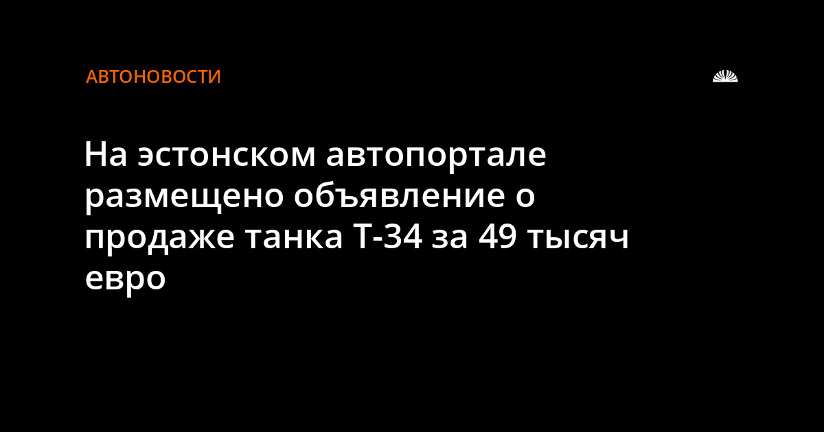 На одном из эстонских порталов, который предназначен для размещения объявлений о продаже автомобилей и запчастей, появилось достаточно странное объявление, автор которого предлагает на продажу танк Т-34.