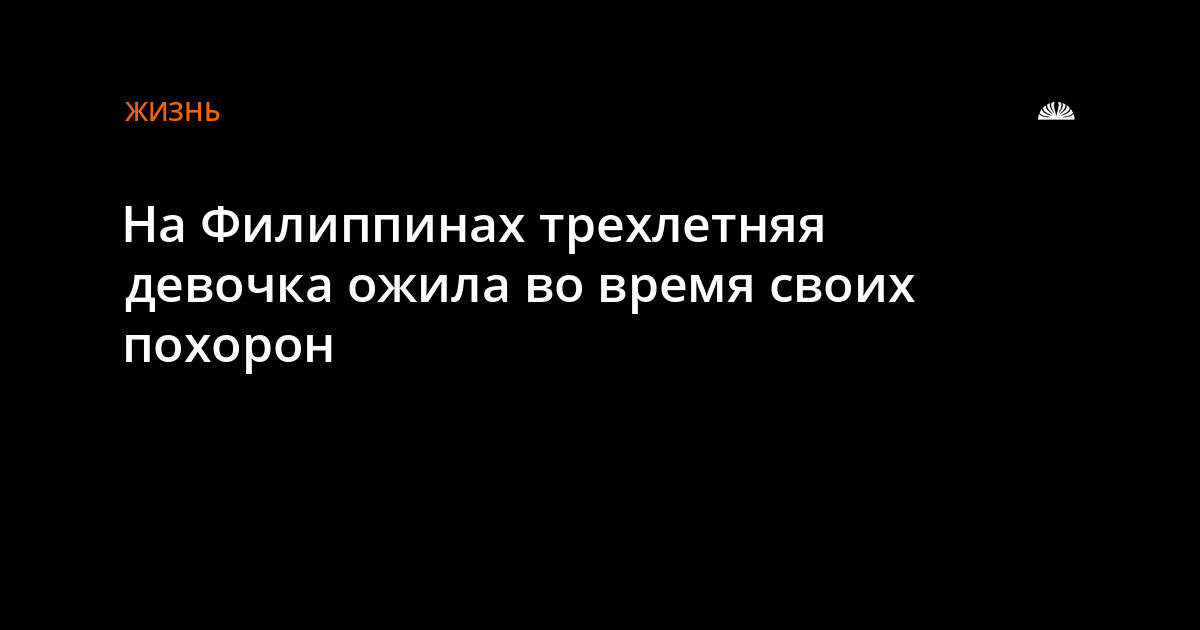 Совершенно невероятное событие случилось в городе Аврора провинции Южная Замбоанга (Филиппины). Трехлетняя малышка, которую врачи признали мертвой, внезапно подала признаки жизни прямо на собственных похоронах.