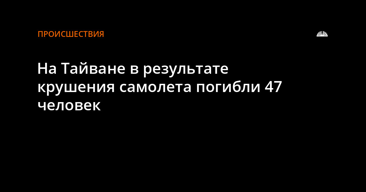 В результате неудачной экстренной посадки самолета тайваньской авиакомпании "ТрансАзия Эйрвэйз" сегодня на архипелаге Пэнху погибли 47 человек, сообщили в транспортном ведомстве Тайваня. 11 пассажиров получили травмы.