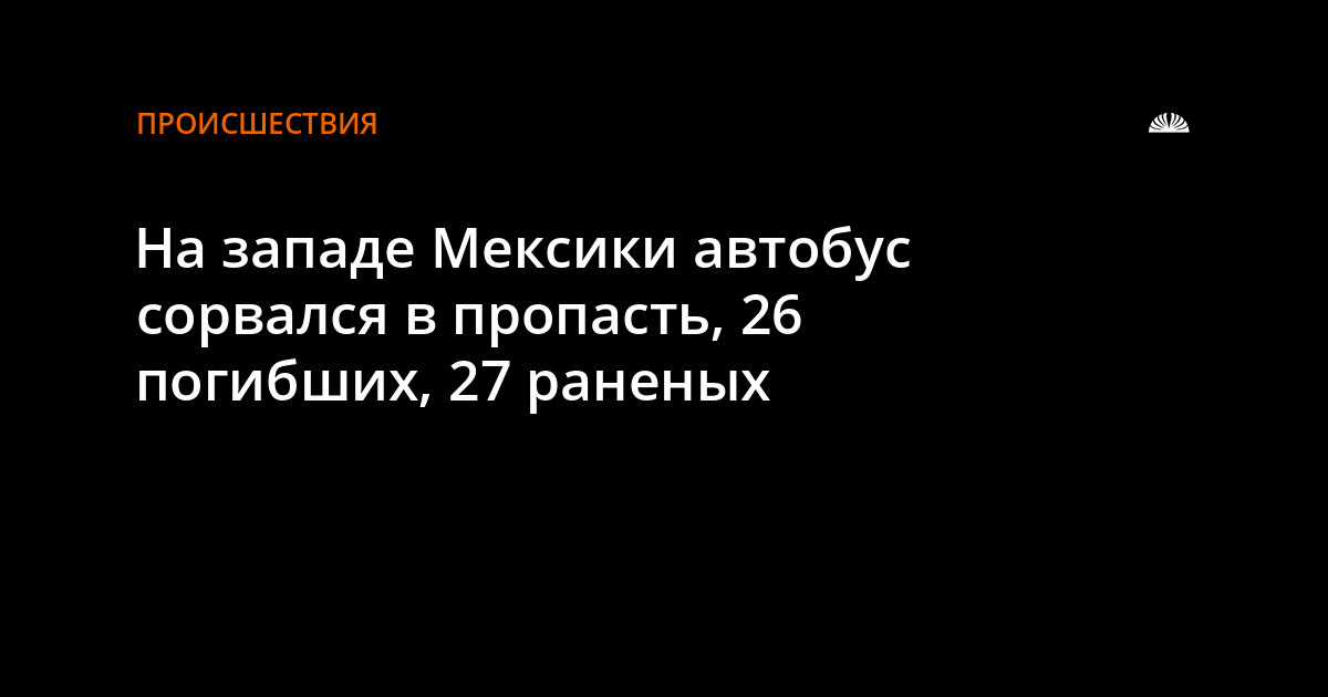 В ходе ДТП на западе Мексики, которое произошло в пятницу, погибли, по меньшей мере, 26 человек, сообщает телекомпания Televisa.