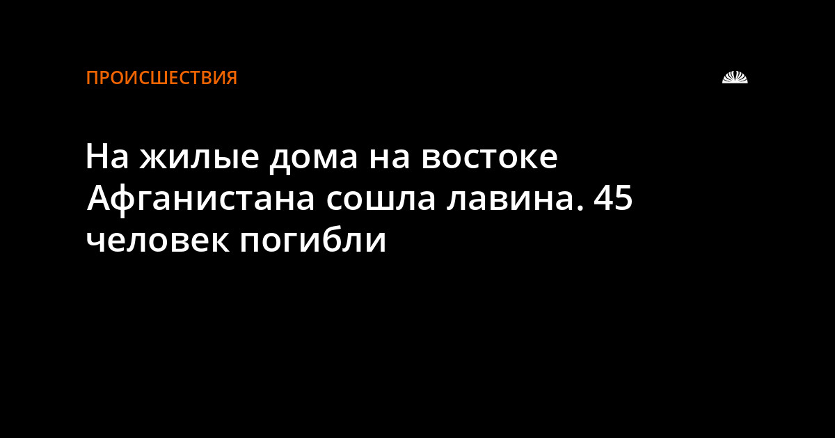 По меньшей мере, 45 человек стали жертвами лавины, сошедшей в понедельник в провинции Наристан на востоке Афганистана на 13 жилых домов, сообщает Газета.ру со ссылкой на "Синьхуа".