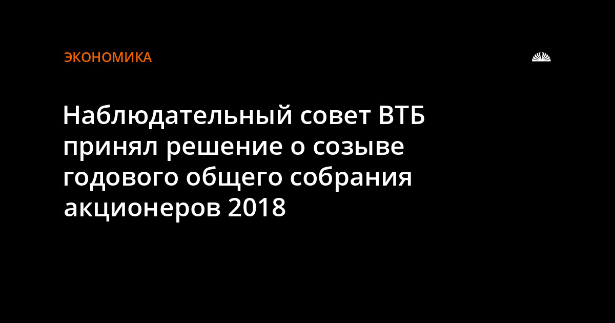 Список лиц, имеющих право на участие в годовом общем собрании акционеров, будет составлен на основании данных реестра акционеров банка ВТБ по состоянию на 28 апреля 2018 года. Регистрация лиц, участвующих в годовом общем собрании акционеров, будет производиться с 12 часов 00 минут 23 мая 2018 года. Собрание начнет работу в 14 часов.