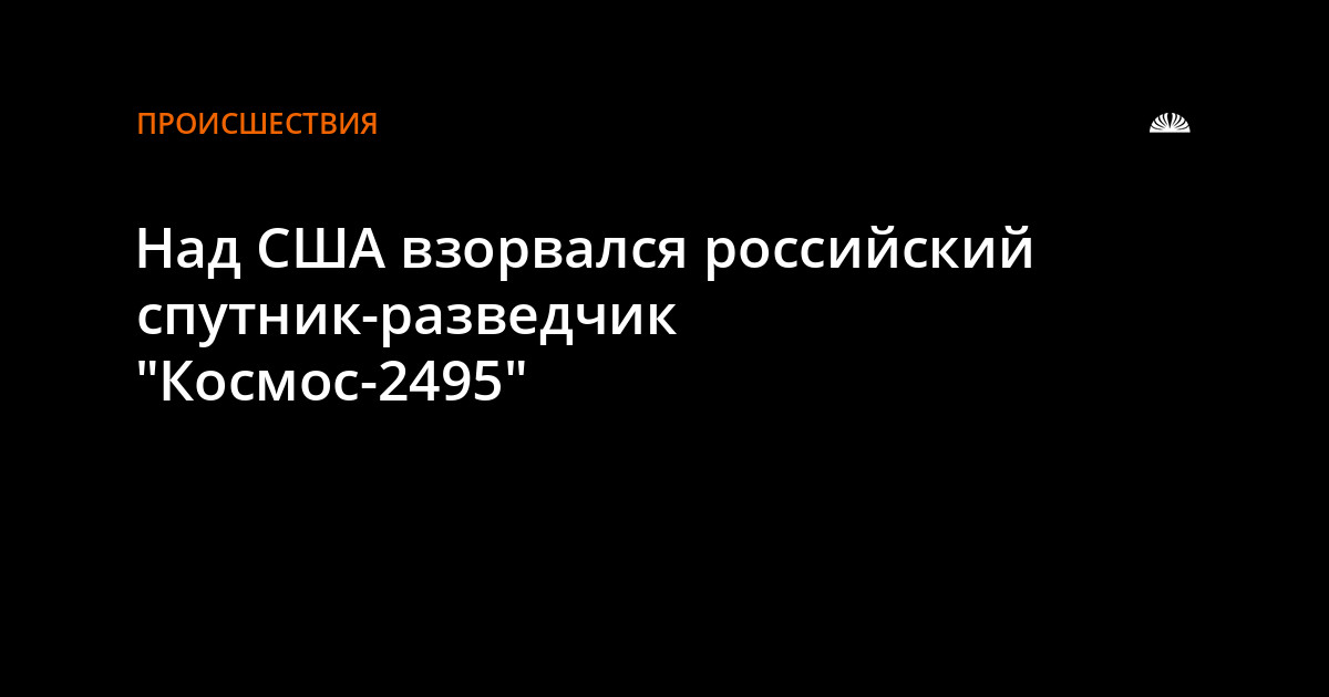 Над США взорвался российский спутник-разведчик "Космос-2495", который вел фотосъемку территории. Как сообщает "Русская служба новостей" с ссылкой на американские СМИ, гибель аппарата зафиксировали более 30 свидетелей Американского метеоритного общества.