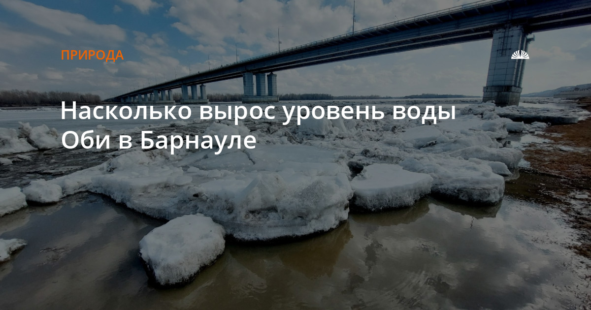 По состоянию на 8 апреля уровень воды в реке Обь у Барнаула составляет 368 см над нулевым уровнем водомерного поста по данным ЦГМС. За сутки повысился на 37 см. — 7 апреля уровень воды в Оби около Барнаула достиг 331 см.