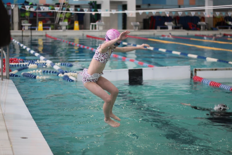 Выпускной проходил в бассейне «Обь». Организаторы выбрали глубокую воду — 2,5 метра, где дети не могли достать дна. Это условие, максимально приближенное к реальной ситуации на водоеме. Результаты превзошли ожидания. Из более чем 30 детей только четверо держались за бортик — остальные уверенно преодолевали дистанцию и выполняли тесты.