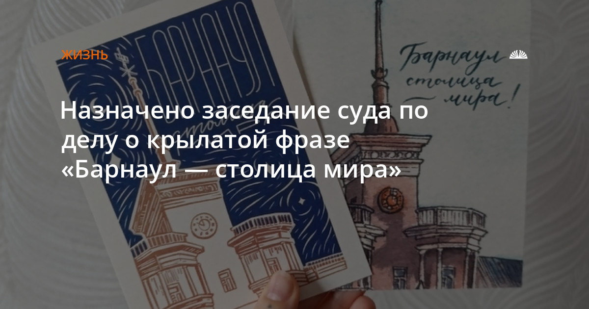 Евгения предоставит коллегии книгу Сергея Орехова «Барнаул — столица мира», изданную в 1992 и 2002 годах. Кроме того, она использует рассказы свидетелей и интервью, где автор делился историей появления крылатой фразы.
