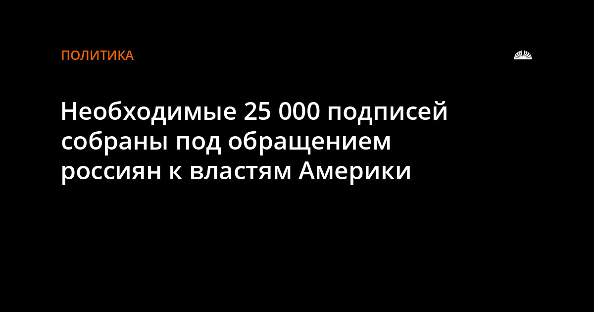 25 000 голосов были собраны уже 23 декабря. На момент публикации новости счётчик показывает количество подписавшихся - 25 015. Для оставления голоса не нужно быть гражданином США, достаточно регистрации на сайте Белого дома.