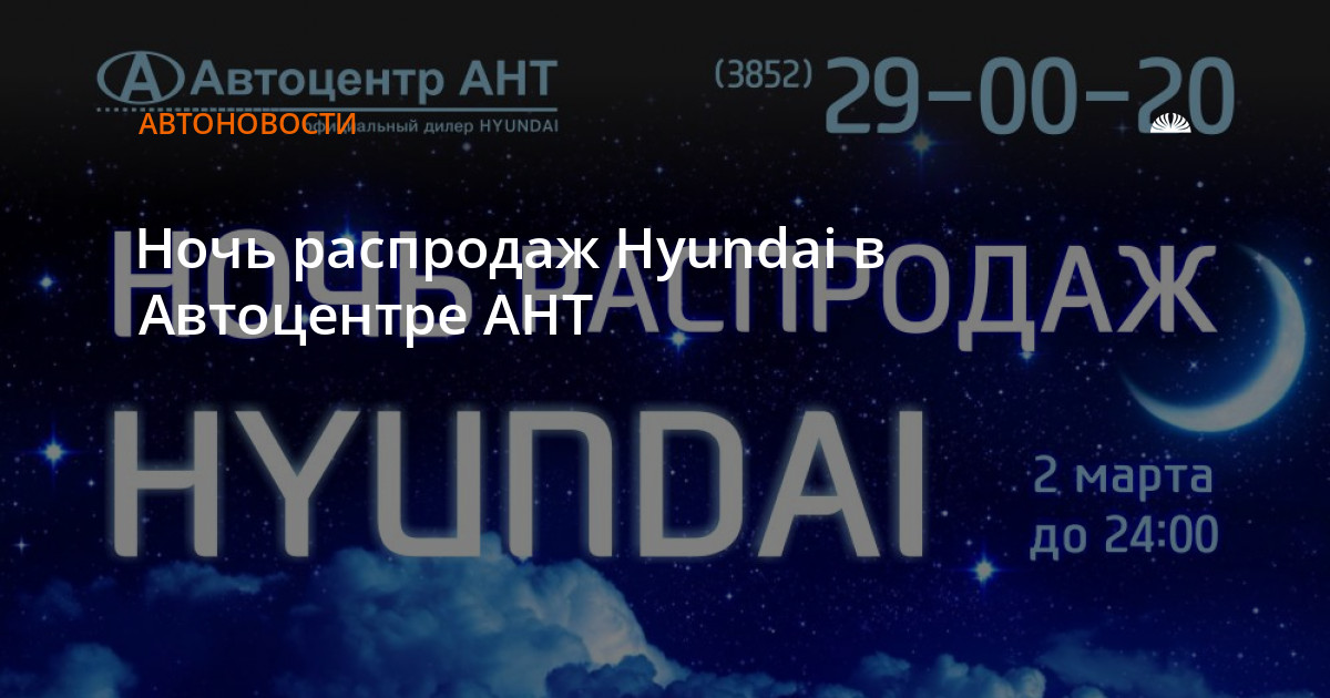 Ночь распродаж – это лучшие предложения на весь модельный ряд Hyundai 2016года.