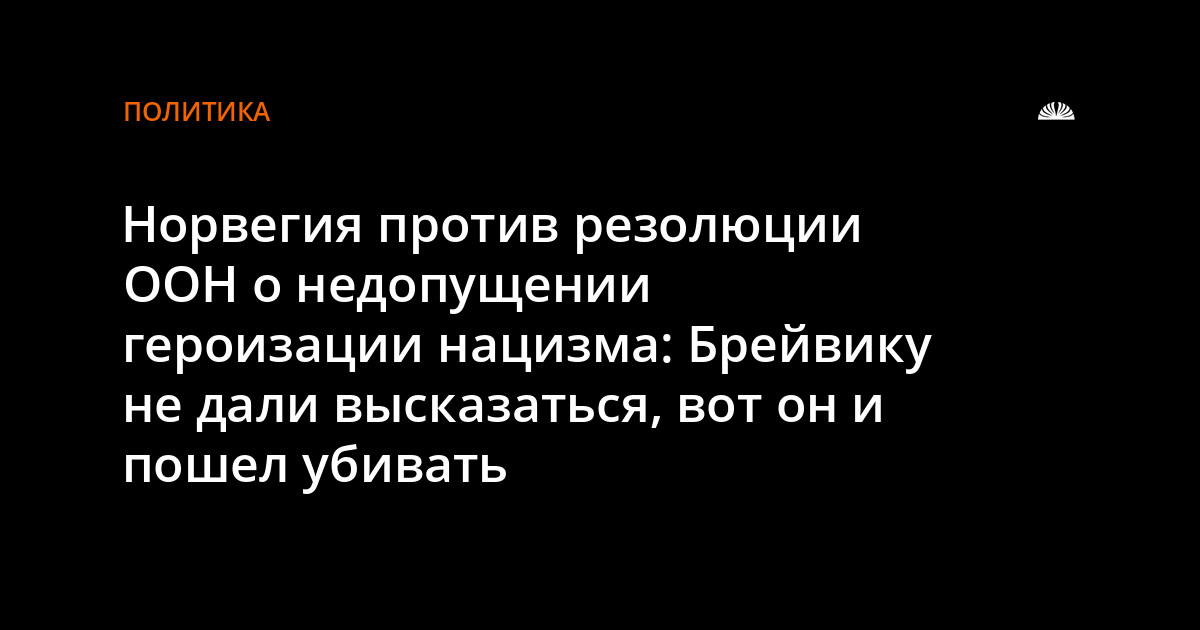 Онако на сей раз представитель королевства Норвегии потребовал удалить из текста любые упоминания экстремистских политических партий, движений и групп, а также высказался против запрета на публичную пропаганду экстремистами своих убеждений, передает МТРК "Мир". Норвежец ссылается на некий "синдром Брейвика", мол, отсутствие возможности высказаться стало одной из причин действий Андерса Брейвика и привело к такой форме его "самореализации".