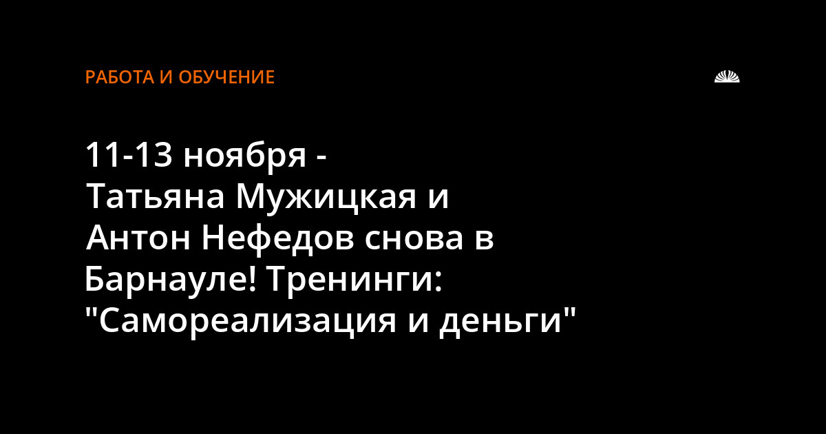 Главный приз - билет на участие в тренинге Татьяны Мужицкой и Антона Нефедова для наших подписчиков!