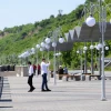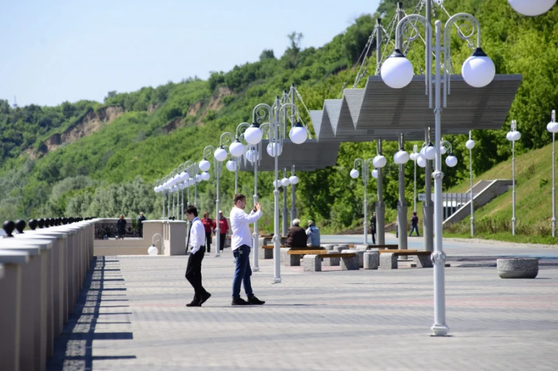 Нижний уровень набережной и бетонные плиты с надписями частично скрыло под водой.