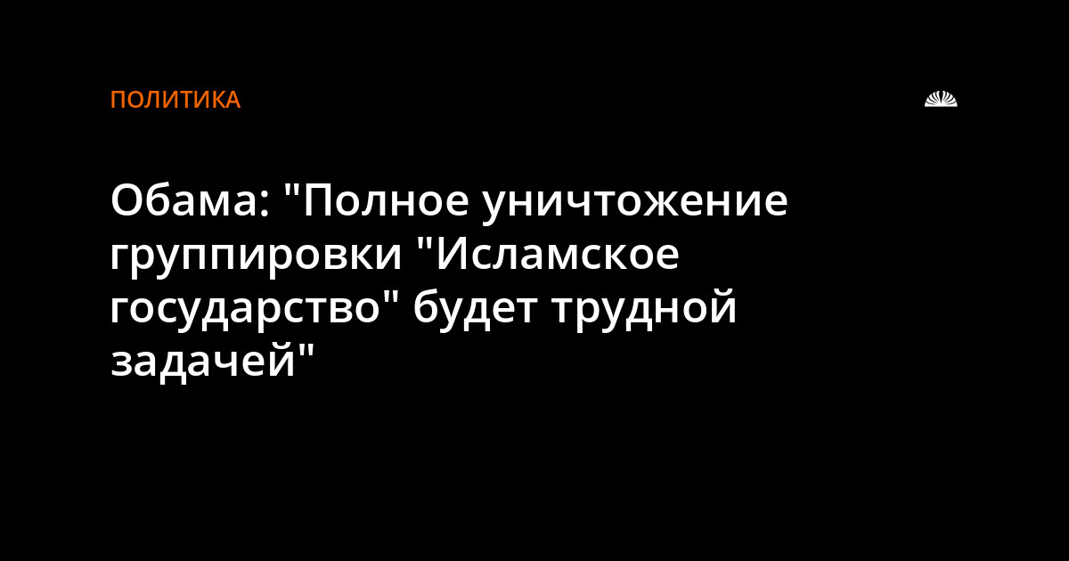 Президент США Барак Обама во вторник заявил, что полностью уничтожить такие экстремистские группировки как "Исламское государство" (ИГ) будет непросто, к тому же это займет продолжительное время.