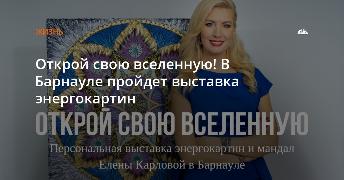 Сейчас уникальная экспозиция энергокартин Елены Карловой вернулась в столицу Алтайского края. И теперь будет доступна для посещения каждому жителю Барнаула. Любой сможет посетить потрясающую выставку, окунуться в мир безусловной любви и наполниться чистой и светлой энергией.