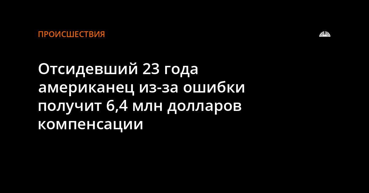Ошибочно осужденный на длительный срок тюремного заключения американец получит компенсацию в размере 6,4 млн долларов, сообщает polit.ru со ссылкой на зарубежные СМИ.
