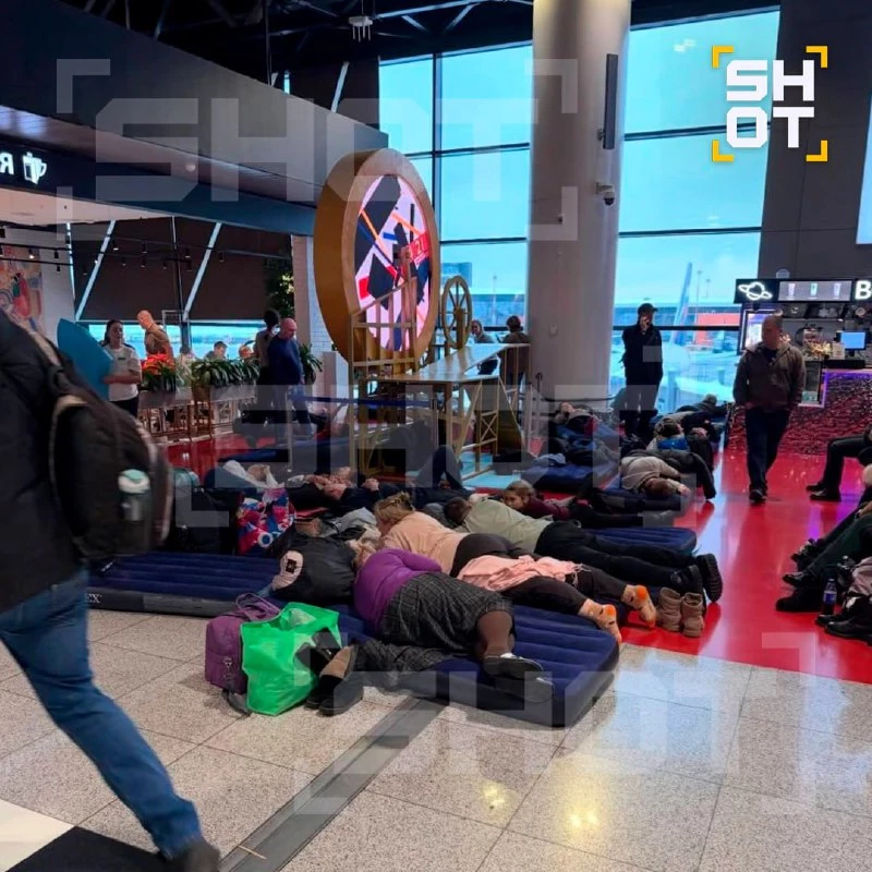Всего на вылет задержали 47 рейсов, на прилет — 72, и один — отменили. Ожидающие отправки пассажиры массово раскладывают надувные матрасы прямо на полу аэропорта.