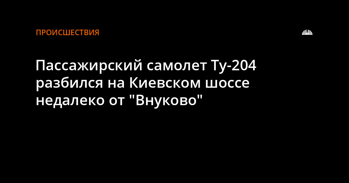 Пассажирский самолет Ту-204 разбился на Киевском шоссе в Москве недалеко от московского аэропорта "Внуково". При совершении посадки самолет выкатился за пределы посадочной полосы.
