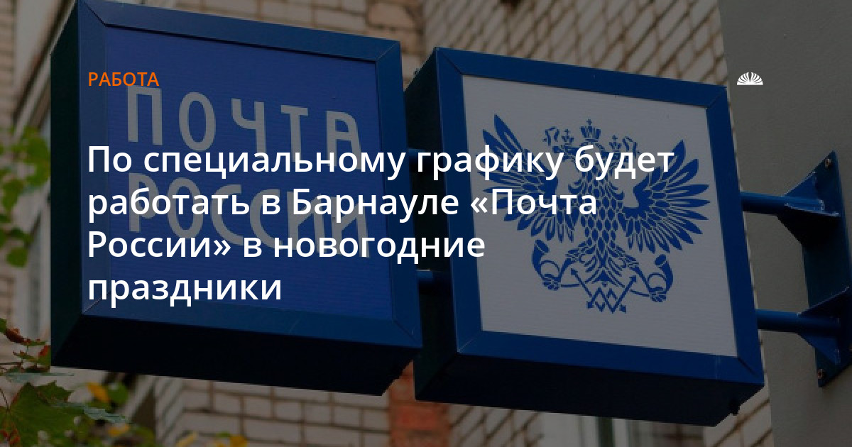 В другие праздничные дни и новогодние каникулы график работы в разных почтовых отделениях может отличаться. Например, 2 и 7 января по установленном графику будут работать почтовые офисы 656000 (Барнаул, пр. Ленина, д. 54), 658200 (Рубцовск, ул. Карла Маркса, д. 139), 659100 (г. Заринск, пр. Строителей, д. 13) и ещё 22 отделения.