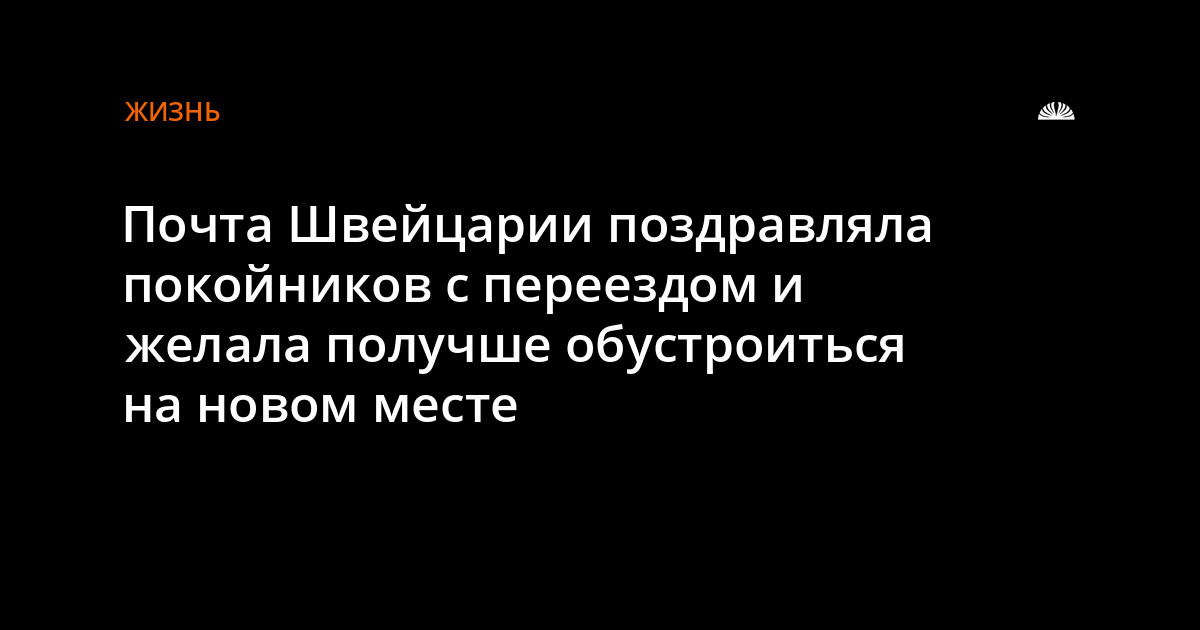 Почта Швейцарии извинилась за поздравления с переездом и пожелания хорошо обустроиться на новом месте, которые были отправлены умершим клиентам. Как объяснили в почтовой службе, поздравительные письма рассылались автоматически после того, как родственники умерших оформляли переадресацию их корреспонденции на новые адреса.