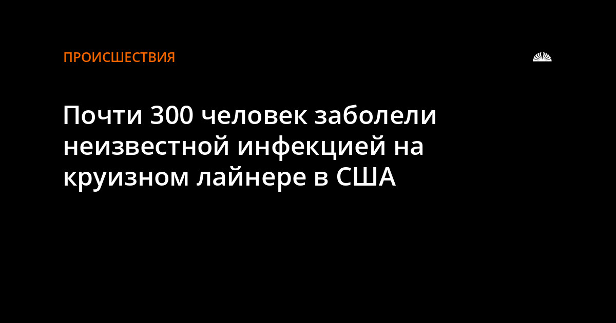 Массовое отравление произошло на борту круизного лайнера Explorer of the Seas, принадлежащего компании Royal Caribbean. Как передают СМИ со ссылкой на Центр по профилактике и контролю заболеваемости США, отравились не менее 281 из 3050 пассажиров, а также 22 члена команды. Симптомы отравления включают рвоту и диарею. Причина заболевания пока не установлена, у пострадавших взяты анализы.