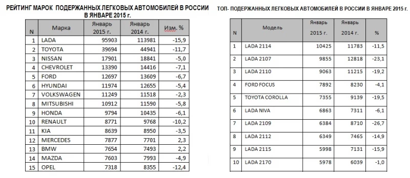 Продажи традиционно лидирующей на российском рынке подержанных автомобилей LADA снизились по итогам января на 15,9%. Среди моделей лидером стала LADA 2114, но и ее продажи в январе упали на 11,5%. Из тех LADA, что вошли в ТОП-25, ни одна не продемонстрировала положительную динамику, все ушли в "минус".