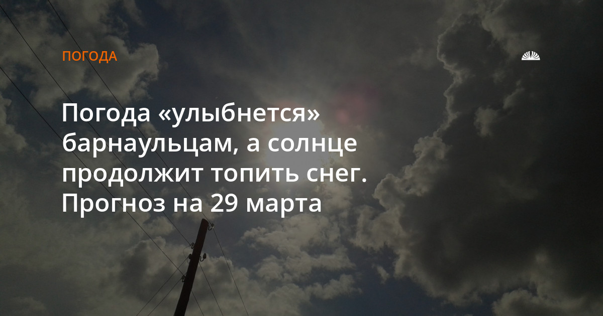 Погода «улыбнется» барнаульцам, а солнце продолжит топить снег. Прогноз на 29 марта