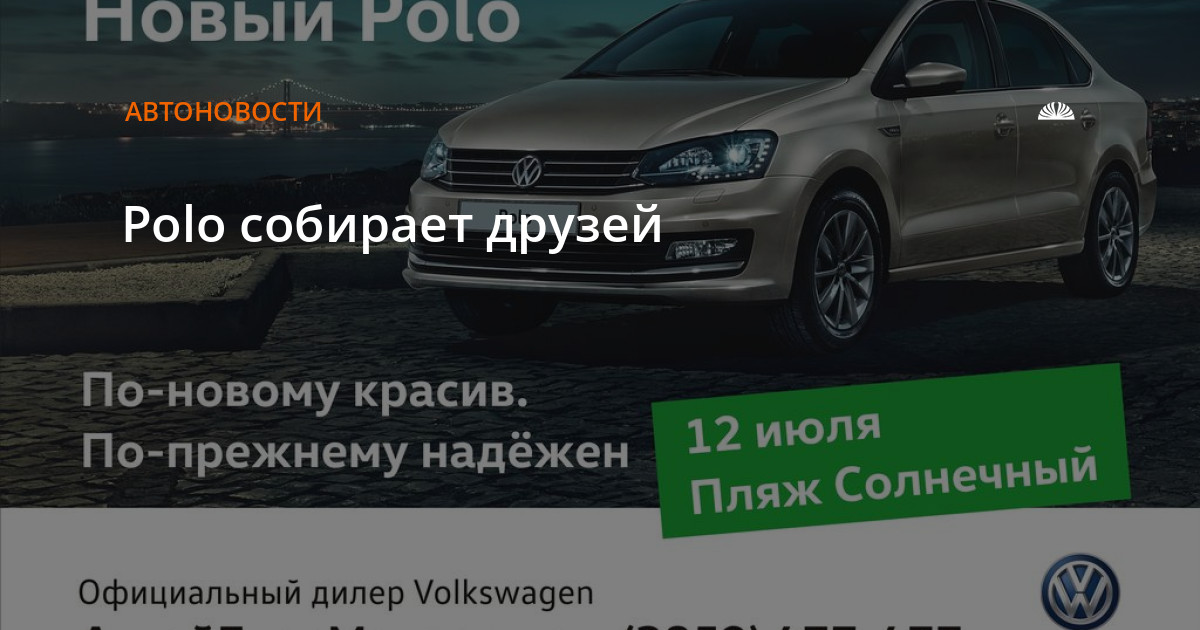 Лучший друг Polo ждет Вас на пляже "Солнечный", в это воскресенье, 12 июля, в 12.00, по адресу п. Солнечный, ул. Кольцевая, 1.