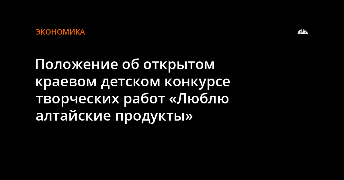 Открытый краевой детский конкурс творческих работ «Люблю алтайские продукты» является информационным проектом, направленным на формирование основ культуры рационального питания, в первую очередь, среди детей и подростков, на привлечение внимания и формирование интереса к региональным продуктам питания, популяризацию и продвижение регионального товарного знака «Алтайские продукты +100 к здоровью!» и воспитание продуктового патриотизма.