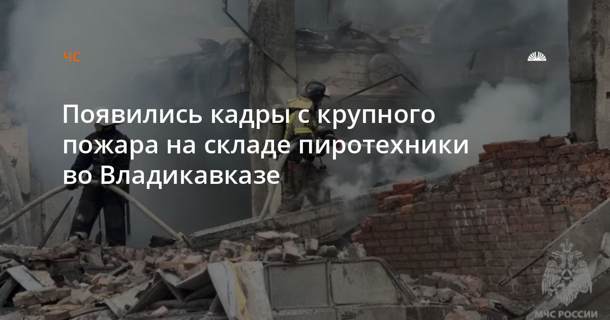 Появились кадры с крупного пожара на складе пиротехники во Владикавказе