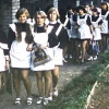 А на торжественной линейке во дворе школы какой-нибудь высокий и крепкий выпускник (тогда это были 10-клаасники) должен был нести на плечах нарядную первоклассницу с большими бантами, которая звонили в колокольчик.