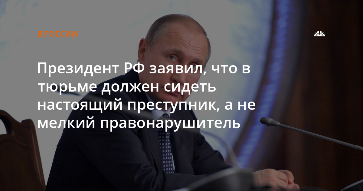 Президент РФ заявил, что в тюрьме должен сидеть настоящий преступник, а не мелкий правонарушитель