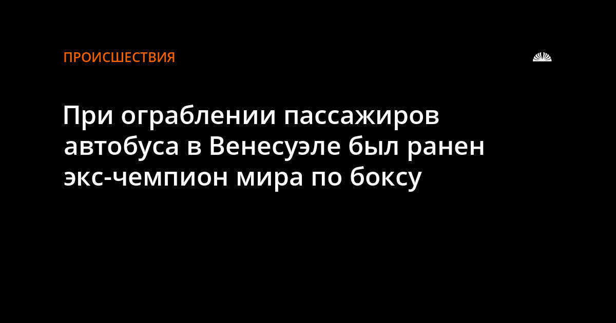 Бывший чемпион мира по боксу венесуэлец Хосе Санабрия получил пулевое ранение в грудь. 51-летний Санабрия был ранен во время ограбления автобуса, когда один из преступников принял его за полицейского. Бывший боксер был в красной рубашке, похожей на те, что иногда носят полицейские в Венесуэле, сообщает местное издание El Carabobeño.