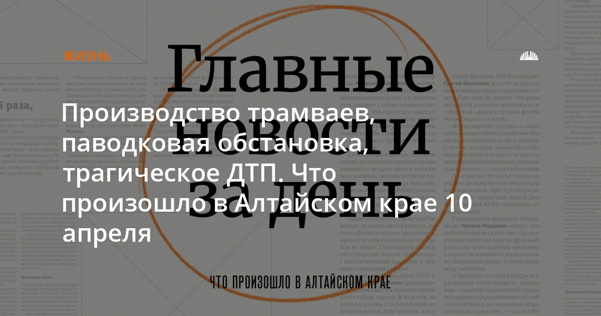 Производство трамваев, паводковая обстановка, трагическое ДТП. Что произошло в Алтайском крае 10 апреля